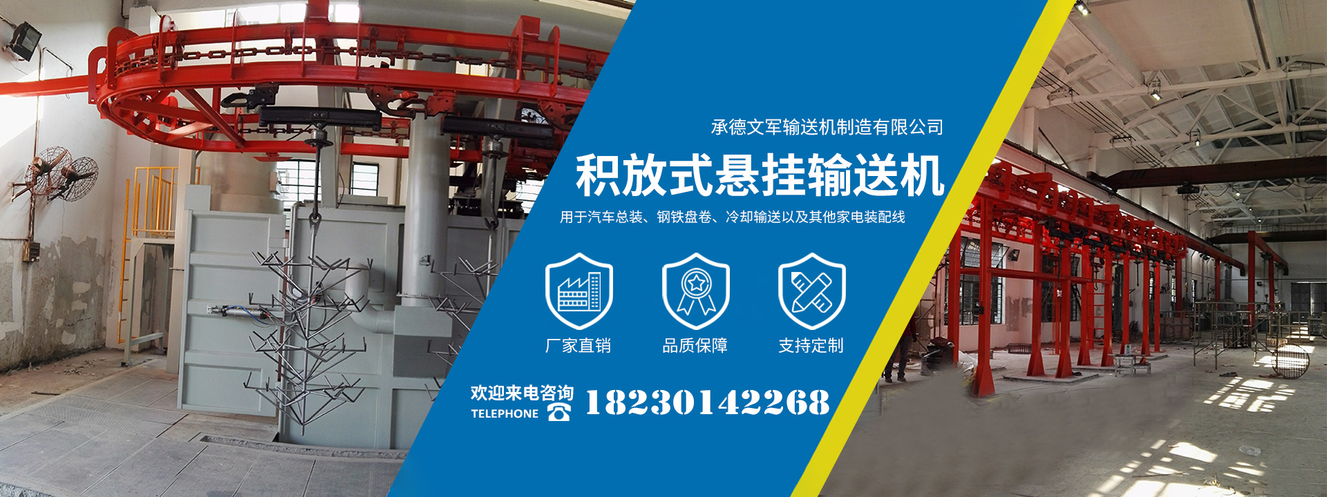 承德文軍輸送機(jī)制造有限公司位于承德縣孟家院鄉(xiāng)工業(yè)園,自2009年起公司專注生產(chǎn)制造各類工廠物流自動(dòng)化設(shè)備,替代了進(jìn)口產(chǎn)品,并成功進(jìn)入了國外市場,再此基礎(chǔ)上公司的AS/RS自動(dòng)化立體倉庫成功用于煙草、發(fā)動(dòng)機(jī)、鑄造型芯、以及其他物流配送中心,公司的積放式懸掛輸送機(jī)廣泛用于汽車總裝、鋼鐵盤卷、冷卻輸送以及其他家電裝配線等。